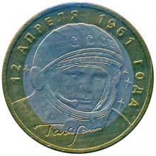 Реверс: изображение Ю.А. Гагарина в скафандре, под ним — подпись-факсимиле «ГАГАРИН», вверху по окружности — надпись: «12 АПРЕЛЯ 1961 ГОДА».