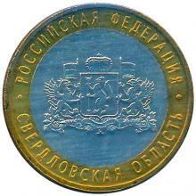 Реверс: изображение герба Свердловской области, по окружности - надписи: вверху - "РОССИЙСКАЯ ФЕДЕРАЦИЯ", внизу - "СВЕРДЛОВСКАЯ ОБЛАСТЬ".