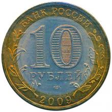 Аверс: в центре диска - обозначение достоинства монеты "10 РУБЛЕЙ". Внутри цифры "0" - скрытые, видимые поочередно при изменении угла зрения изображения цифры "10" и надписи "РУБ". В нижней части диска - товарный знак монетного двора. В верхней части кольца по окружности - надпись: "БАНК РОССИИ", в нижней - дата "2009", слева и справа - стилизованные ветви растений, переходящие на диск.