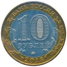 Аверс: на диске в центре – обозначение номинала монеты: "10 РУБЛЕЙ", внутри цифры "0" – скрытые, видимые поочередно при изменении угла зрения изображения числа "10" и надписи "РУБ", внизу – товарный знак монетного двора; на кольце вверху – надпись: "БАНК РОССИИ", внизу – год выпуска "2018", слева и справа – стилизованные ветви растений, переходящие на диск.