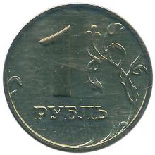 - в нижней части диска, под орлом – буквенное обозначение номинала в одну строку: "ОДИН РУБЛЬ", подчеркнутое горизонтальной линией, разделенной посередине точкой; - внизу под линией – год чеканки.