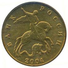 - вверху по окружности слева на право – надпись, разделенная фигурой Георгия Победоносца: "БАНК РОССИИ"; - внизу, под фигурой змея – год чеканки.