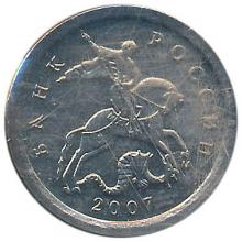 - в центре (ближе к правому краю) – обозначение номинала монеты: цифра 1, под ней - слово "КОПЕЙКА", расположенное горизонтально;