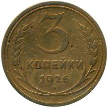 Реверс: номинал, написанный в две строки: "3 копейки", под ним дата, ниже - точка.