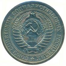 Реверс: номинал, написанный в две строки: "1 рубль", под ним дата - 1974.