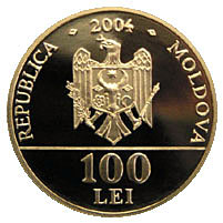 В верхней части – цифра „2004”, в нижней части – надпись „100 LEI”, по окружности монеты – заглавными буквами выгравирована надпись „REPUBLICA MOLDOVA”.