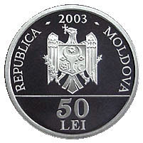 В верхней части – цифра „2003”, в нижней части – надпись „50 LEI”, по окружности монеты – заглавными буквами выгравирована надпись „REPUBLICA MOLDOVA”.