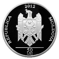 В верхней части – цифра „2012”, в нижней части – надпись „50 LEI”, по окружности монеты – заглавными буквами выгравирована надпись „REPUBLICA MOLDOVA”.
