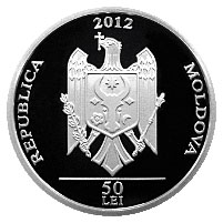 В верхней части – цифра „2012”, в нижней части – надпись „50 LEI”, по окружности монеты – заглавными буквами выгравирована надпись „REPUBLICA MOLDOVA”.