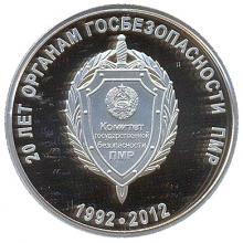 Аверс: в центре – изображение герба Комитета государственной безопасности ПМР; по кругу слева направо – надпись «20 лет органам госбезопасности ПМР»; внизу – надпись «1992-2012».