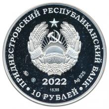 Аверс: в центре – изображение Государственного герба Приднестровской Молдавской Республики; по кругу – надписи: вверху – «ПРИДНЕСТРОВСКИЙ РЕСПУБЛИКАНСКИЙ БАНК», внизу – «10 РУБЛЕЙ»; в нижней части под гербом – год выпуска монеты «2023», ниже – содержание химически чистого металла в граммах, слева – логотип изготовителя, государственное пробирное клеймо, справа – обозначение металла, проба сплава.