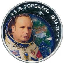 в центре – в цветном исполнении крупным планом портрет советского лётчика-космонавта, дважды Героя Советского Союза В.В. Горбатко в скафандре без шлема на фоне планеты Земля; вверху по кругу – изображение трёх звезд и надпись «В.В. ГОРБАТКО 1934-2017».