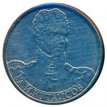 Реверс: погрудный рельефный портрет А.И. Кутайсова в военном мундире, внизу у канта на широкой ленте - надпись: "А.И. КУТАЙСОВ".