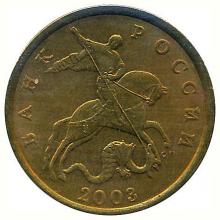 - вверху по окружности слева на право – надпись, разделенная фигурой Георгия Победоносца: "БАНК РОССИИ"; - внизу, под фигурой змея – год чеканки.