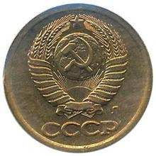 Реверс: герб СССР с пятнадцатью витками перевязывающей ленты. Под ним горизонтальная надпись "СССР".