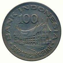 Лесное хозяйство для процветания страны. Аверс: Жилище минангкабу. Реверс: легендарное Древо Жизни.