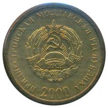 На лицевой стороне монеты номиналом 50 копеек: в центре расположен государственный герб ПМР, обрамленный по кругу надписью "Приднестровская Молдавская Республика". Под гербом расположен год образца "2000".