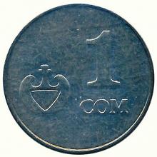 Аверс: слева изображение традиционного кыргызского кожаного сосуда кёёкёр для национального напитка кумыс. На каждом кёёкёре размещен символ тумар, представленный в виде треугольника, который использовался в различных кыргызских орнаментах. Справа - номинал в две строки - "1 сом".