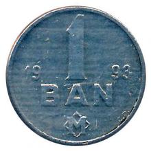 Реверс: в центре номинал "1 BAN"; год выпуска; в нижней части буква "M" (Moldova), которая расположена на ромбе. Монета имеет круглую форму с выступающим кольцевым кантом по окружности ее аверса и реверса. Расположение изображений аверса и реверса определяется поворотом монеты относительно ее горизонтальной оси под углом 180 градусов.