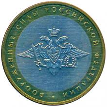 Реверс: в центре - эмблема вооруженных сил Российской Федерации, по окружности - надпись: "ВООРУЖЕННЫЕ СИЛЫ РОССИЙСКОЙ ФЕДЕРАЦИИ".