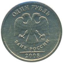 - в нижней части диска, под орлом – буквенное обозначение номинала в одну строку: "ОДИН РУБЛЬ", подчеркнутое горизонтальной линией, разделенной посередине точкой; - внизу под линией – год чеканки.
