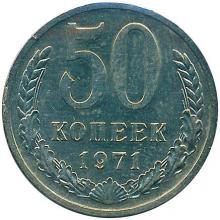Реверс: номинал, написанный в две строки: "50 копеек", под ним дата. По бокам венок, верхнюю часть которого составляют колосья, нижнюю - дубовые листья, соединенные внизу декоративной ракушкой.