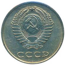 Реверс: герб СССР с пятнадцатью витками перевязывающей ленты. Под ним горизонтальная надпись "СССР".