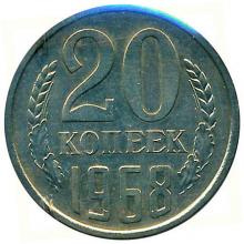 Аверс: номинал, написанный в две строки: "20 копеек", под ним дата. По бокам венок, верхнюю часть которого составляют колосья, нижнюю - дубовые листья, соединенные внизу декоративной ракушкой.