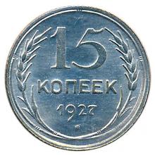 Аверс: номинал, написанный в две строки: "15 копеек", под ним дата, ниже - точка. По бокам колосья, стебли которых пересекаются и образуют круговой ободок.