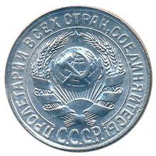 Реверс: герб СССР с семью витками перевязывающей ленты, под ним надпись "СССР", от которой начинается линейный круговой ободок. Между обрезом монеты и ободком лозунг "Пролетарии всех стран, соединяйтесь!".