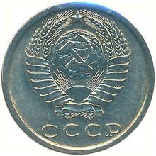 Реверс: герб СССР с пятнадцатью витками перевязывающей ленты. Под ним горизонтальная надпись "СССР".