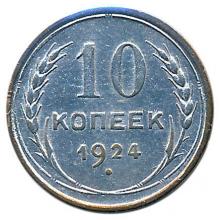 Аверс: номинал, написанный в две строки: "10 копеек", под ним дата, ниже - точка. По бокам колосья, стебли которых пересекаются и образуют круговой ободок.