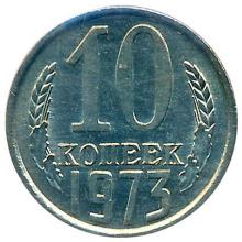 Аверс: номинал, написанный в две строки: "10 копеек", под ним дата. По бокам венок, верхнюю часть которого составляют колосья, нижнюю - дубовые листья, соединенные внизу декоративной ракушкой.