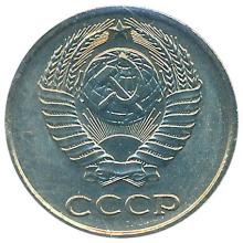 Реверс: герб СССР с пятнадцатью витками перевязывающей ленты. Под ним горизонтальная надпись "СССР".