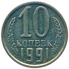 Аверс: номинал, написанный в две строки: "10 копеек", под ним дата. По бокам венок, верхнюю часть которого составляют колосья, нижнюю - дубовые листья, соединенные внизу декоративной ракушкой.