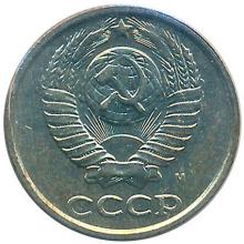 Реверс: герб СССР с пятнадцатью витками перевязывающей ленты. Под ним горизонтальная надпись "СССР".