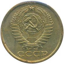 Реверс: герб СССР с пятнадцатью витками перевязывающей ленты. Под ним горизонтальная надпись "СССР".