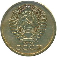 Реверс: герб СССР с пятнадцатью витками перевязывающей ленты. Под ним горизонтальная надпись "СССР".