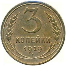 Аверс: номинал, написанный в две строки: "3 копейки", под ним дата, ниже - точка. По бокам колосья, стебли которых пересекаются и образуют круговой ободок.