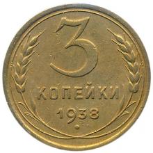 Аверс: номинал "3 копейки", написанный в две строки, под ним дата, ниже - точка. По бокам колосья, стебли которых пересекаются и образуют круговой ободок.