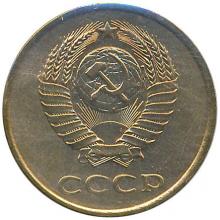 Реверс: герб СССР с пятнадцатью витками перевязывающей ленты. Под ним горизонтальная надпись "СССР".