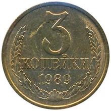 Аверс: номинал, написанный в две строки: "3 копейки", под ним дата. По бокам венок, верхнюю часть которого составляют колосья, нижнюю - дубовые листья, соединенные внизу декоративной ракушкой.