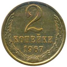 Аверс: номинал "2 копейки", написанный в две строки, под ним дата, ниже - точка. По бокам колосья, стебли которых пересекаются и образуют круговой ободок.