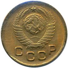 Реверс: герб СССР с одиннадцатью витками перевязывающей ленты. Под ним полукругом со ступенчатым расположением букв надпись "СССР".