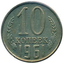 Аверс: номинал, написанный в две строки: "10 копеек", под ним дата. По бокам венок, верхнюю часть которого составляют колосья, нижнюю - дубовые листья, соединенные внизу декоративной ракушкой.