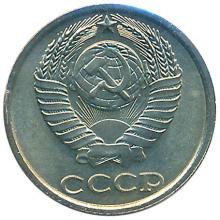 Реверс: герб СССР с пятнадцатью витками перевязывающей ленты. Под ним горизонтальная надпись "СССР".