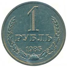 Аверс: в середине монетного поля номинал, написанный в две строки: "1 рубль", под ним - дата. По бокам венок, верхнюю часть которого составляют колосья, нижнюю - дубовые листья, соединенные внизу декоративной ракушкой.