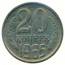 Аверс: номинал, написанный в две строки: "20 копеек", под ним дата. По бокам венок, верхнюю часть которого составляют колосья, нижнюю - дубовые листья, соединенные внизу декоративной ракушкой.