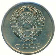 Реверс: герб СССР с пятнадцатью витками перевязывающей ленты. Под ним горизонтальная надпись "СССР".