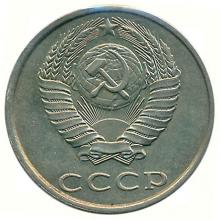 Реверс: герб СССР с пятнадцатью витками перевязывающей ленты. Под ним горизонтальная надпись "СССР".
